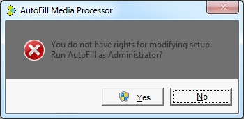 Note : Autofill doit être lancé avec un profil Administrateur. Dans le cas contraire la fenêtre suivante apparaît :