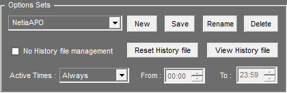 Options Sets : Permet de choisir, créer, sauvegarder, renommer et supprimer différents profils de paramétrage dont le nom apparaît dans la liste déroulante.