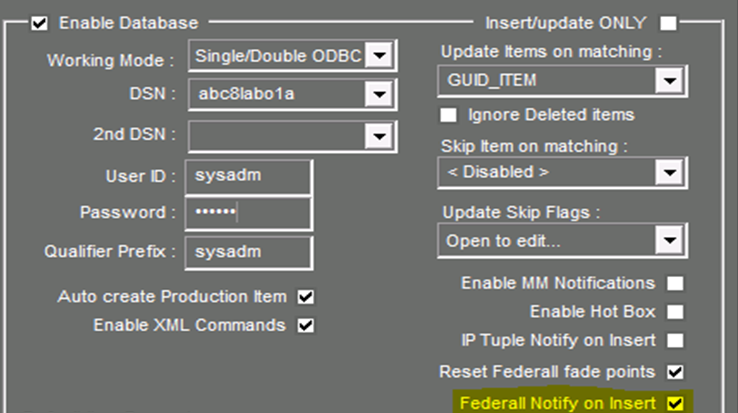DB : Ignore Media File Time | bool | No | Yes : Utiliser les dates du fichier par défaut pour la valeur de DATE_BEG_ITEM et DATE_END_ITEM No : Ne pas utiliser les dates du fichier. |
