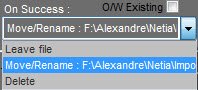 No History file management : Cette option est uniquement disponible pour le mode Automatique. Et n'est pas affichée si le mode "Redundant Mode" est activé. Si coché, les fichiers traités avec succès seront supprimés de la liste de traitement. Si décoché, les fichiers sources seront traités indéfiniment si non supprimés de la liste à moins que des options "post process" soient actives (déplacement ou suppression des fichiers sources).