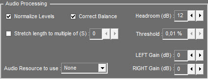 Audio Processing : Paramétrages spécifiques pour les éléments audio uniquement.
