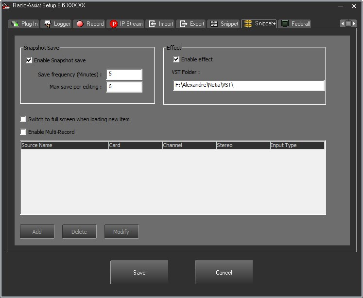 Onglet Snippet+ : gestion des paramètres de configuration de l’onglet Multipistes.