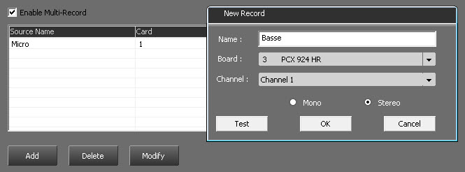pour créer les différents canaux d'enregistrement.