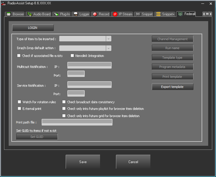 dans l'onglet Federall de Radio Assist.