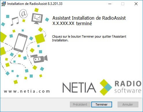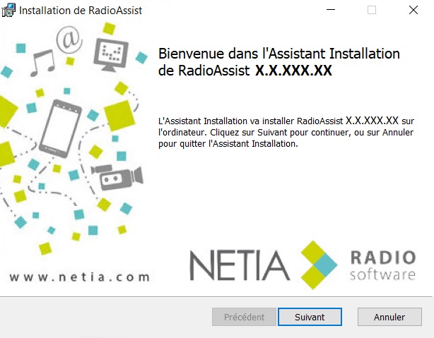 Si une version précédente de RadioAssist est présente sur l’ordinateur, le setup effectuera une migration de la base de registre existante vers [HKEY_LOCAL_MACHINE\SOFTWARE\NETIA\RadioAssist\8.0]