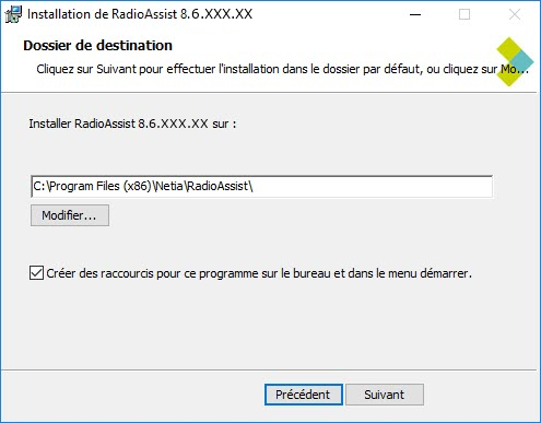 Le programme d’installation installe les fichiers dans le répertoire par défaut suivant : "C\Program Files(x86)\Netia\RadioAssist".