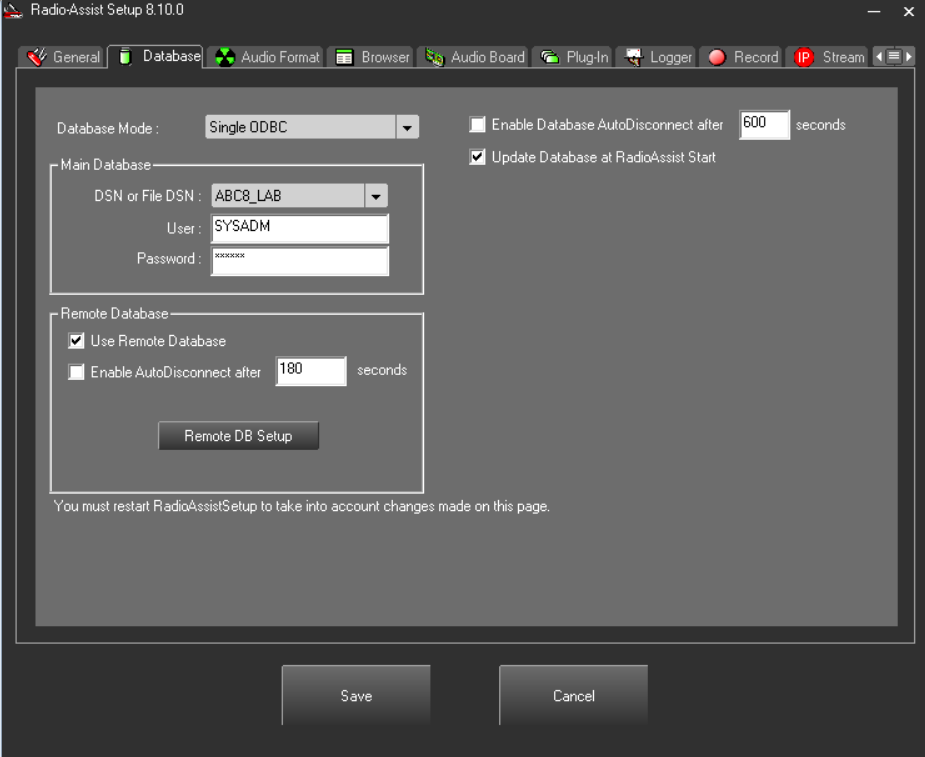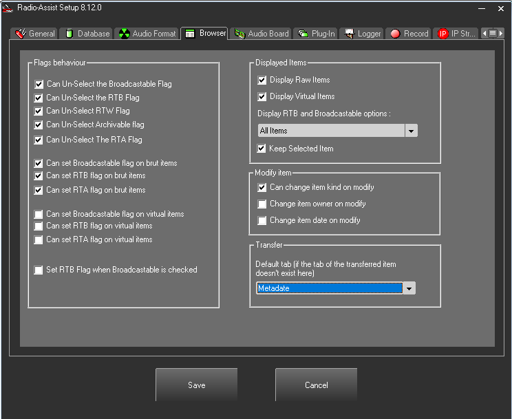 Depuis la release 19.1 de RadioAssist est capable de fonctionner en mode User (au sens Windows) avec les onglets suivants: