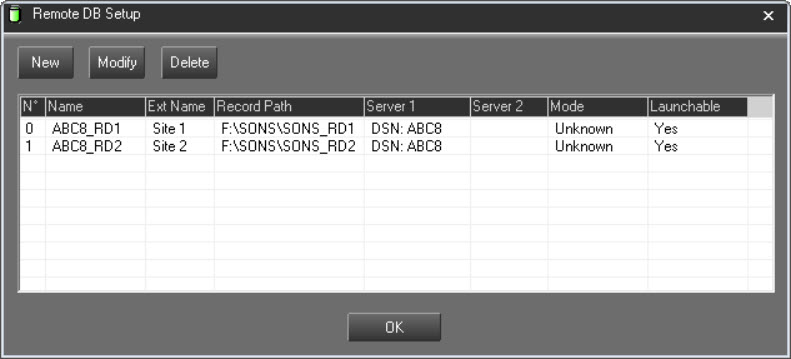 Onglet Database : gestion de la connexion aux bases de données.
