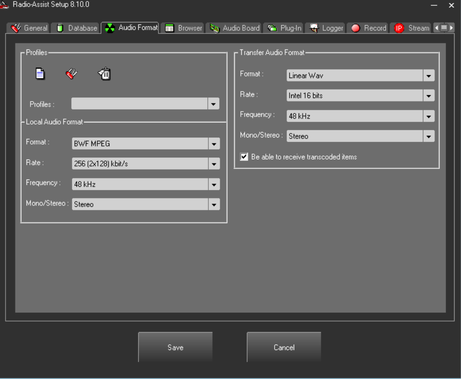 Un profil sert à faire la correspondance entre les éléments sonores contenus dans un onglet du « Browser » de Radio-Assist et les préréglages d’analyse et de normalisation.