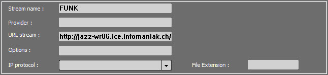 Onglet IP Stream : gestion des paramètres de configuration pour les enregistrements IP.