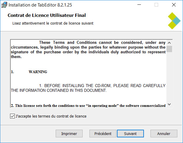 Information : Cette fenêtre n’apparaît qu’une seule fois lorsque vous exécutez pour la première fois le logiciel TabEditor.