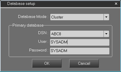 1- Lors de l'utilisation d'une connexion ODBC à la base de données ou d'une connexion "Cluster", sélectionnez dans le menu DSN la base de données primaire. Ensuite, nous mettons le nom d'utilisateur et mot de passe.