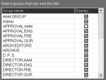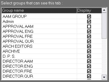 Select groups that can see this tab: Sélection des groupes utilisateurs pour visualisation dans le Browser RadioAssist. |