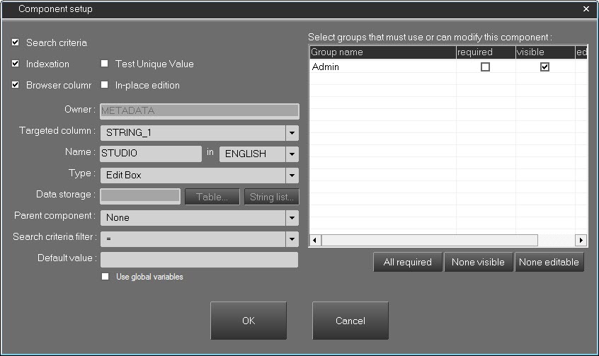 Search criteria : Le composant apparaît comme critère de recherche dans le Browser.