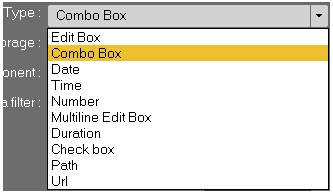 COMBO_STRING | varchar | 25 | Chaîne, nom de la combobox |