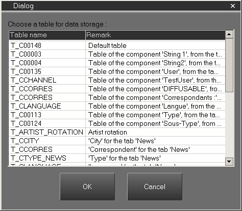 Cette table regroupe les informations relatives pour la gestion des chaînes ajoutées à un composant de type combobox.
